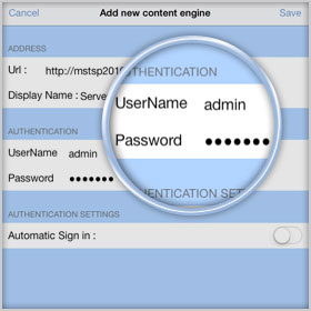 Provide high level of security from unauthorized access of documents. Provides an additional layer of security to access application by prompting to provide password i.e. only authorized users after successful login can access documents from SharePoint repository. Also provides a 4-digit encrypted passcode to access files in offline storage. Easily connects to secured repository running on https.